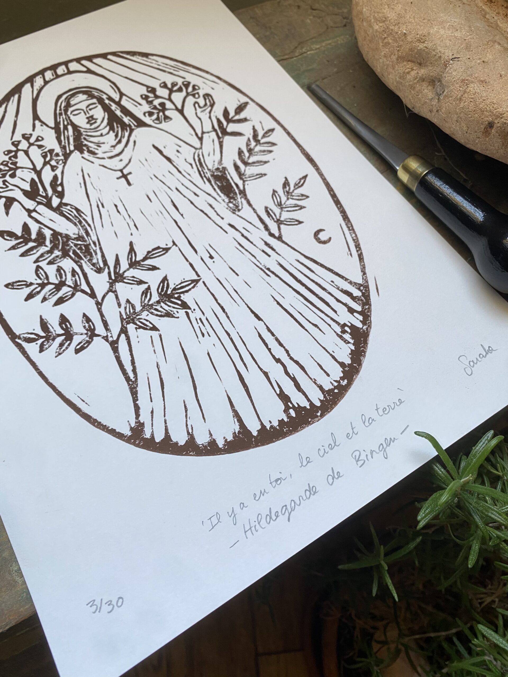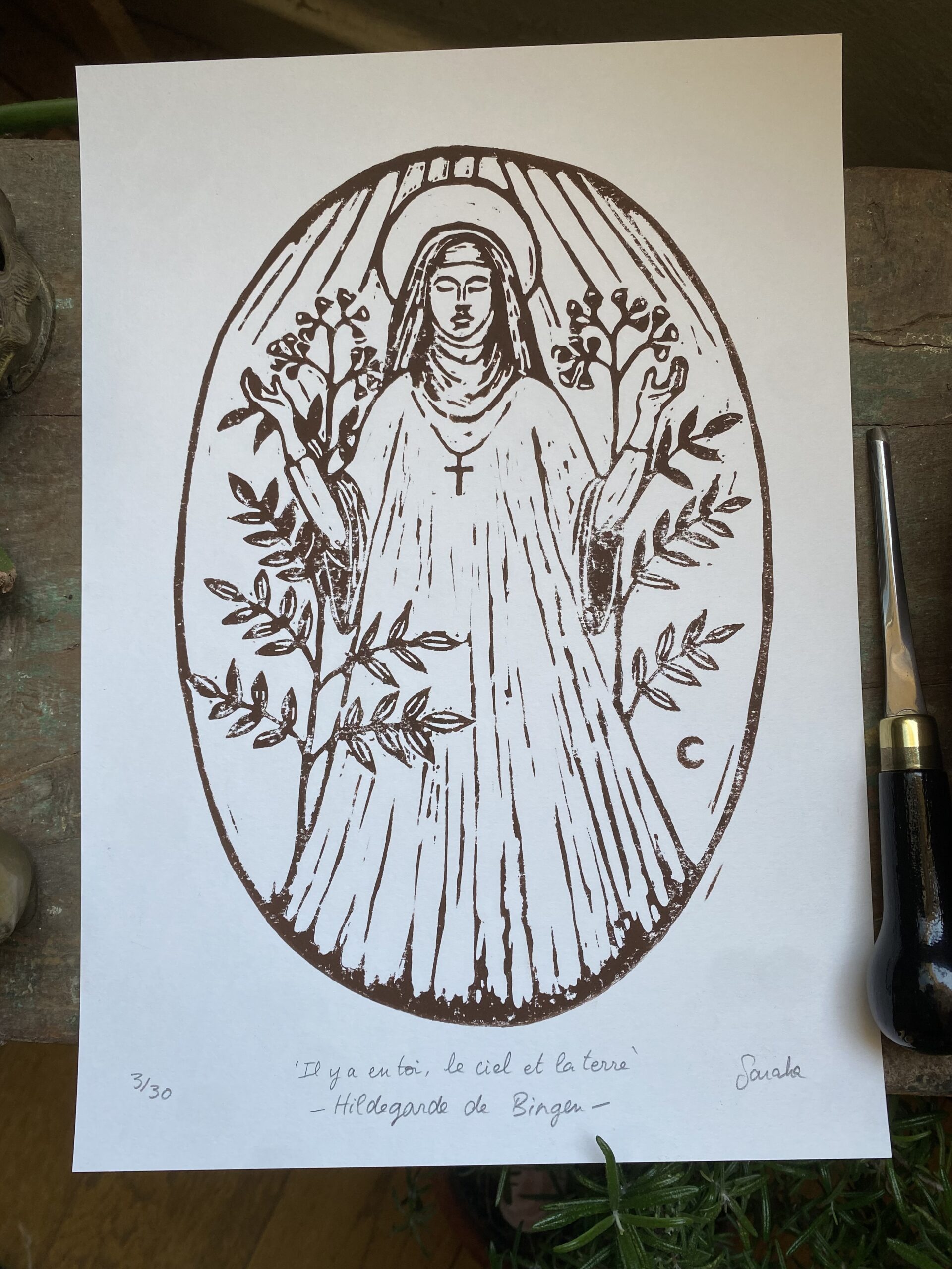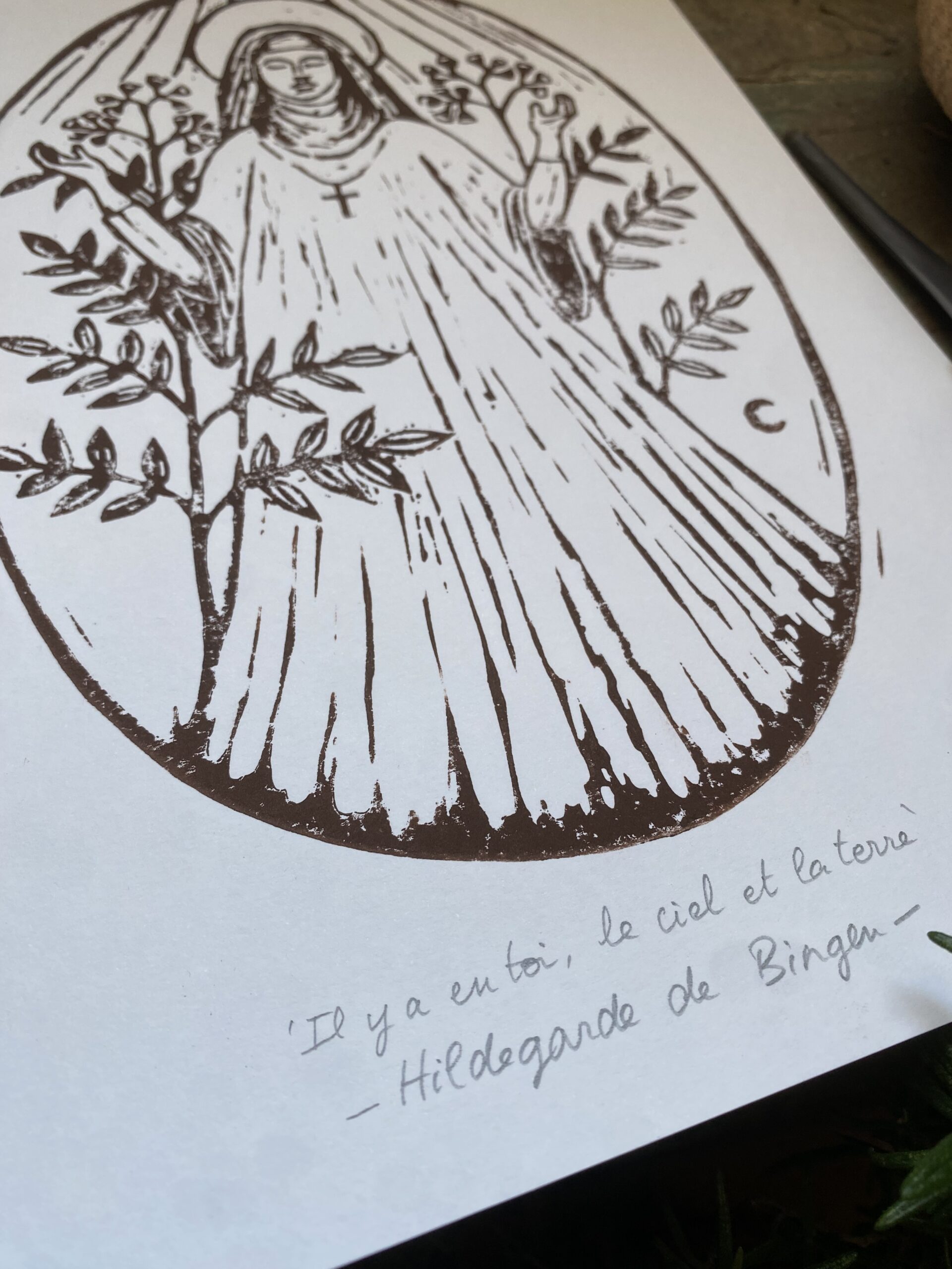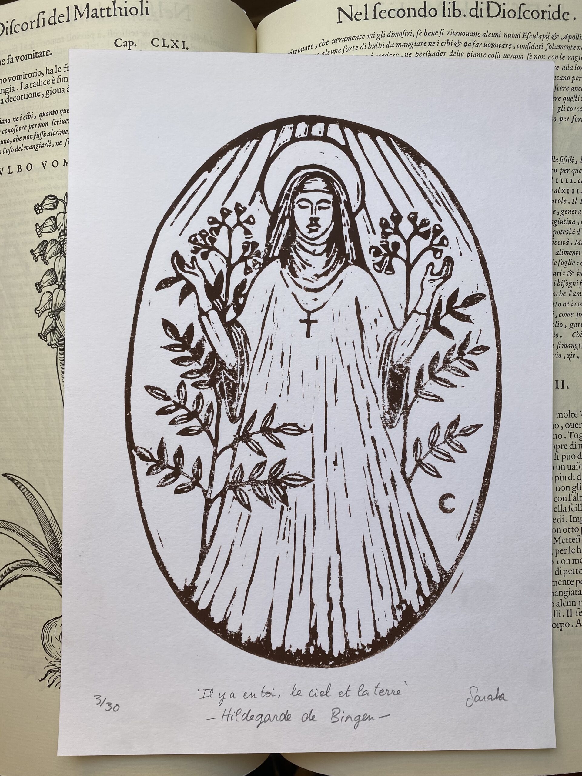 Je connaissais Hildegarde de Bingen, femme religieuse du moyen age, de part son lien avec les plantes et la guérison. Mais je la découvre aussi comme une sorcière, une médium, une sage.
