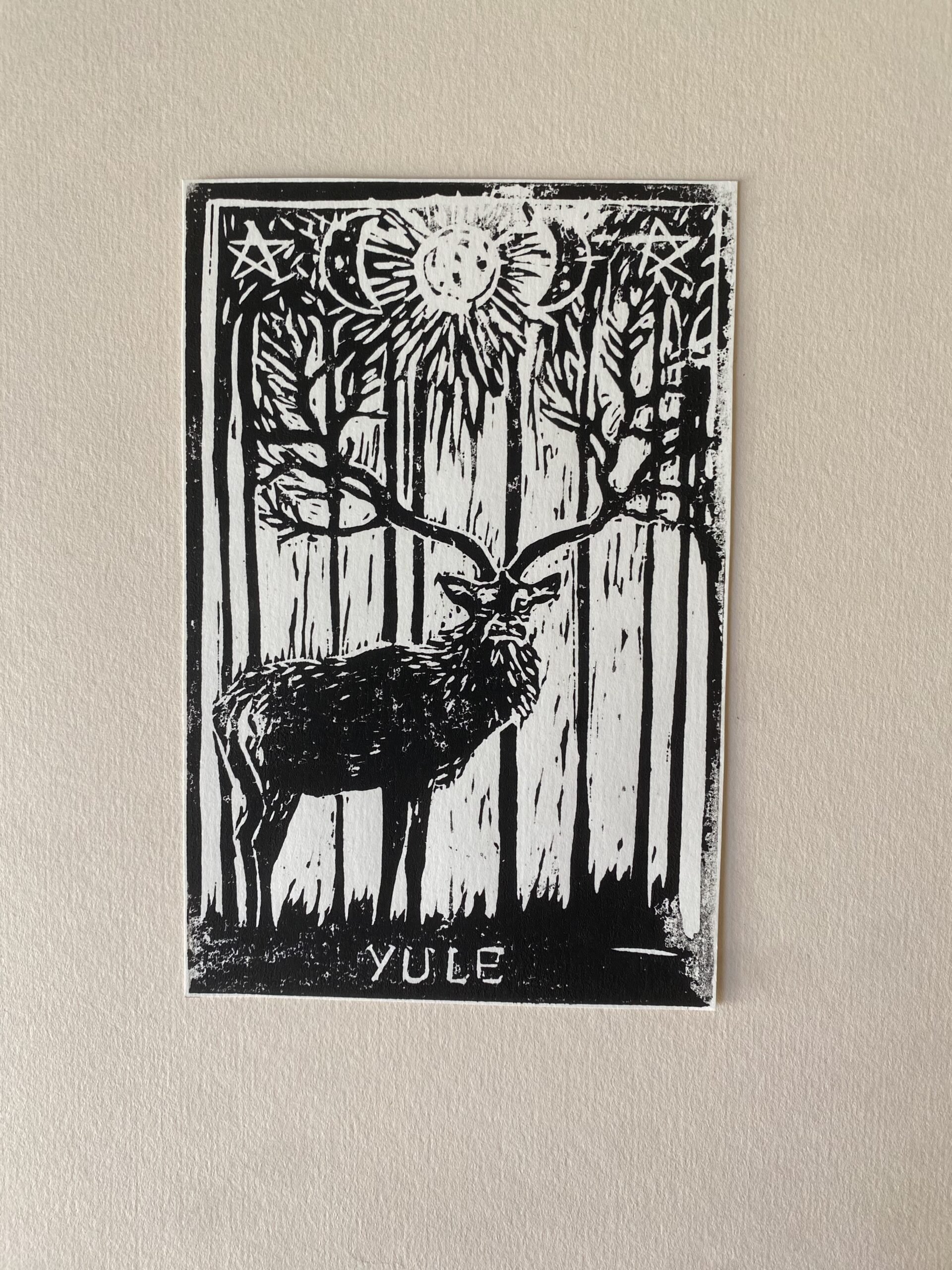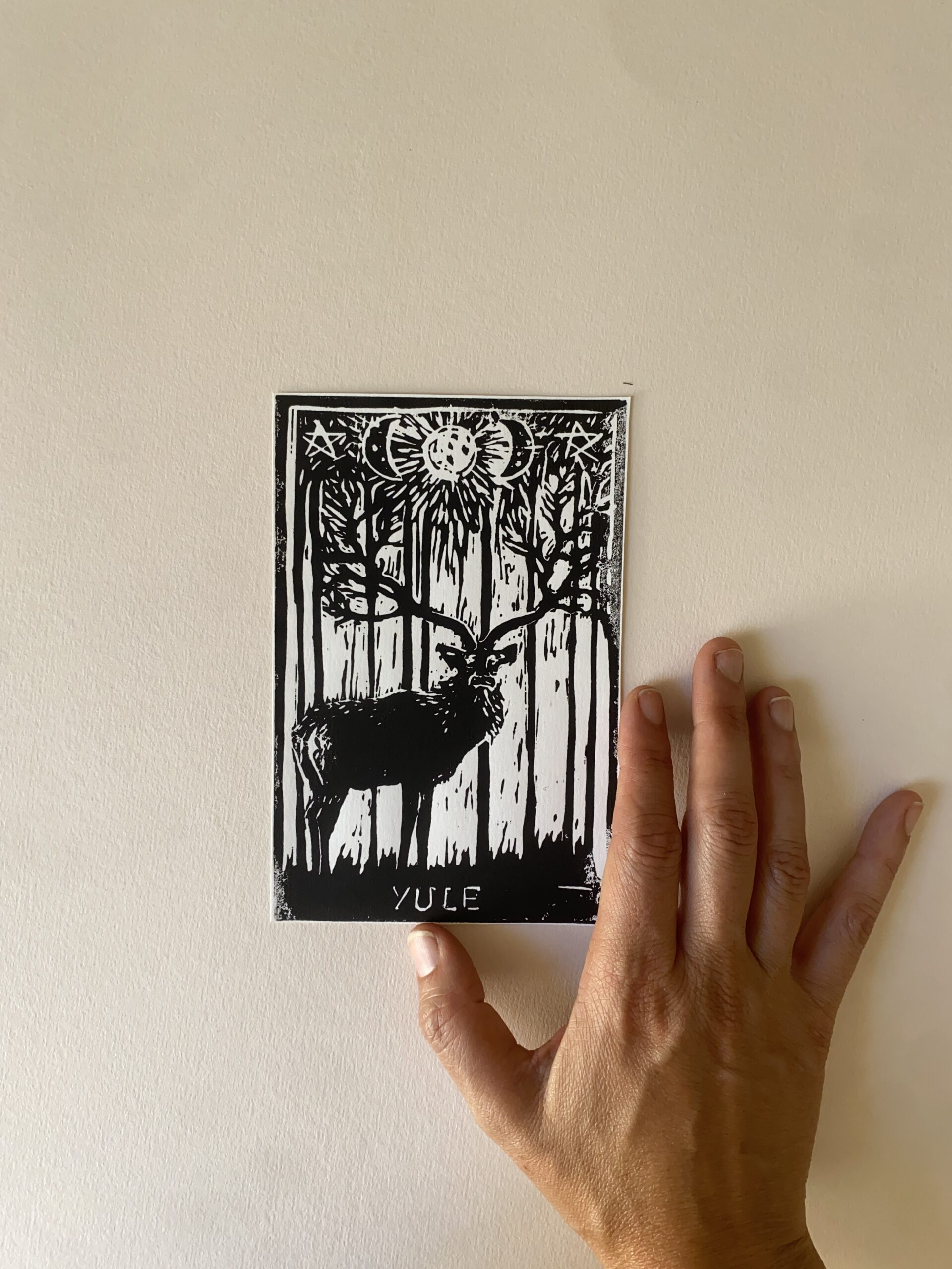 J’ai gravé ce cerf dans la forêt, symbole puissant de Yule. A encadrer ou à poser sur son autel…